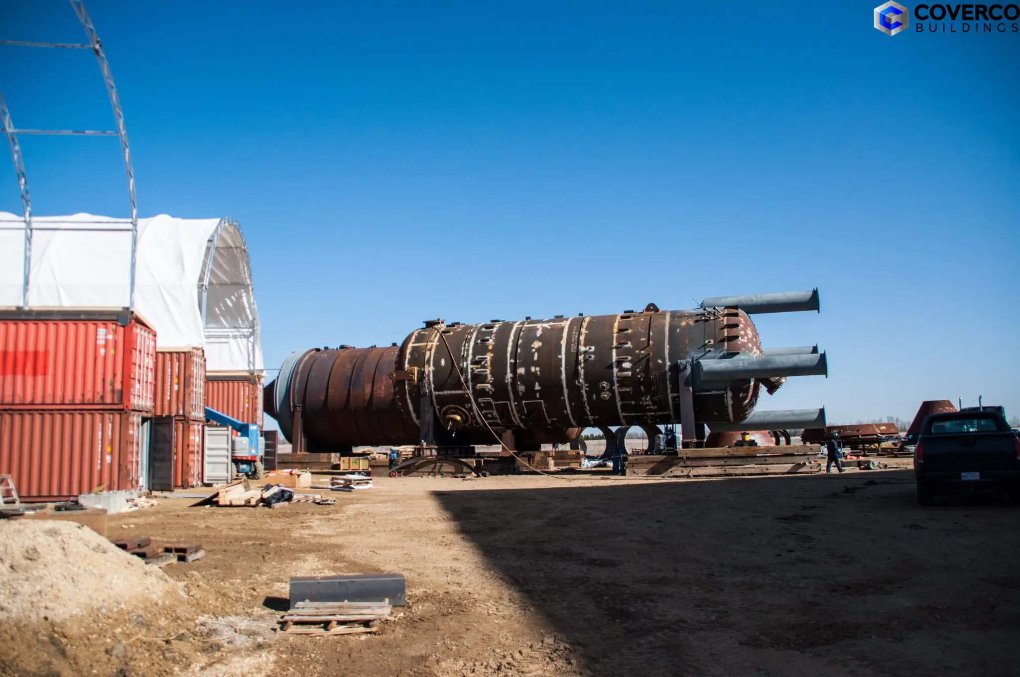 We needed a custom solution to cover massive oil separating vessels. By designing an alternative sea-can foundation and custom overhead door, [Calhoun] Coverco’s solution created substantial value. They were able to install on-time and on-budget.