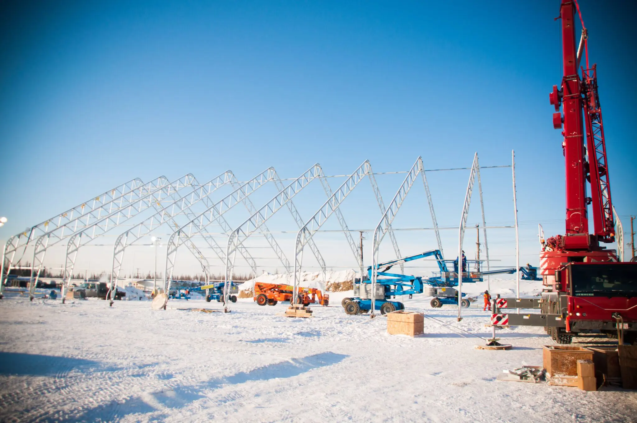 Cenovus Energy avait besoin d'une nouvelle installation d'entreposage couverte immédiatement afin de prendre livraison des autobus. La rapidité et la sécurité de l'installation ont été des facteurs importants dans leur choix d'un bâtiment de la série VP de Calhoun, d'une largeur de 100 pieds et d'une longueur de 250 pieds. Malgré les rigueurs de l'hiver albertain, la livraison a eu lieu quatre jours plus tôt que prévu. Les installateurs ont travaillé jour et nuit pour s'assurer que les délais d'installation soient respectés dans des conditions de -40C.