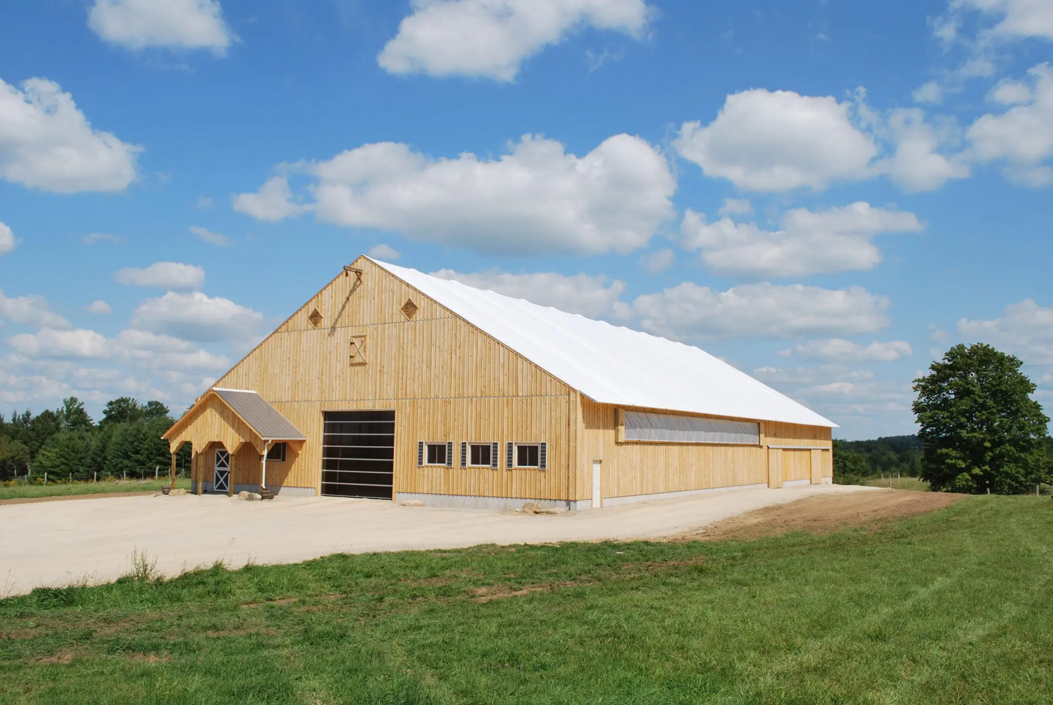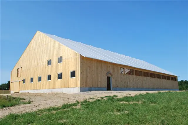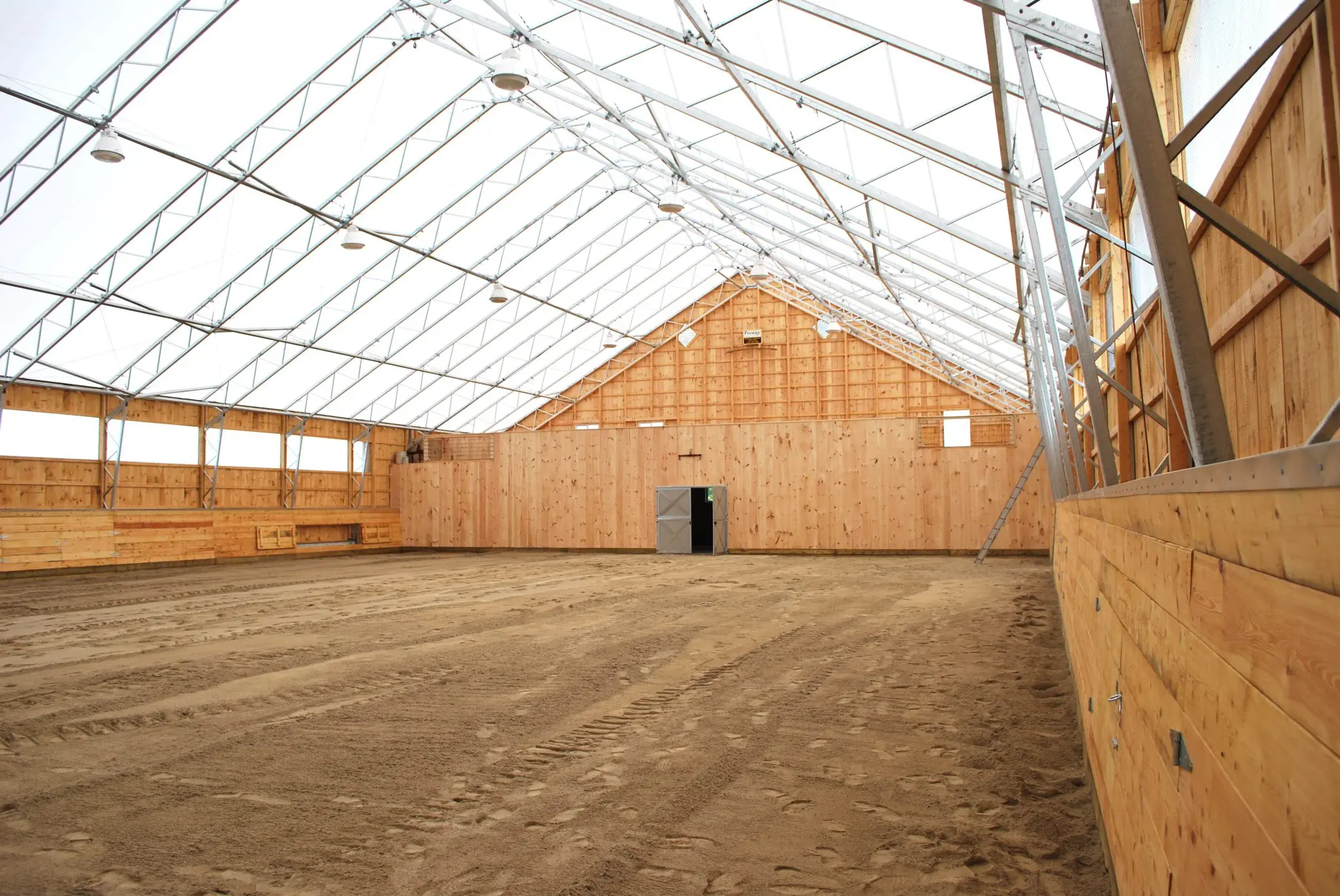Les conditions météorologiques pour l'équitation varient considérablement en Ontario. Le client voulait l'aspect traditionnel d'une grange en bois, mais avec la lumière naturelle et la rentabilité d'une structure toile . L'installation devait être suffisamment grande pour accueillir plusieurs cavaliers et conçue pour résister à des vents violents et à de lourdes charges de neige. Sachant que certaines structures toile ne répondent pas aux spécifications strictes requises pour être assurées contre l'effondrement, le client a effectué de nombreuses recherches afin de faire le meilleur choix pour un manège sûr et fiable.